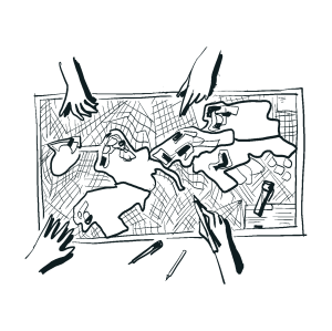 CAT// Vaig començar a il·lustrar fent cartells d’esdeveniments a l’institut. Durant l’última dècada, el meu treball ha anat evolucionant cap a diverses necessitats d’il·lustració (cartells, flyers, etiquetes, adhesius, etc.) per a projectes col·lectius i polítics a Mont-real, Berlín i Barcelona.