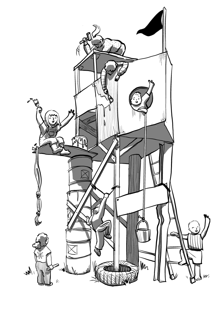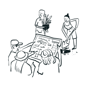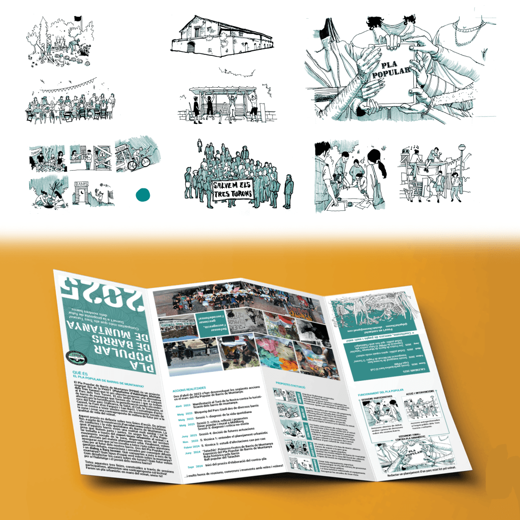 Illustration of posters, flyers and exhibition elements for a neighborhood movement promoting from-below urbanism.