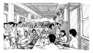 Les Sans-Taverne, various events (karaoke, piano night, massage and roda de samba)